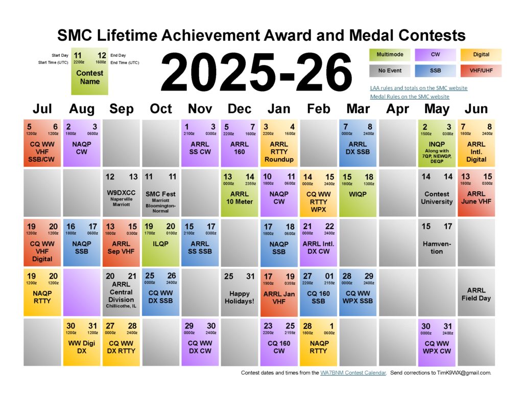 The calendar for 2024 contests counting toward the LAA and Medals programs has been posted. If you just need to see it, you can just click the image on the side bar. The downloadable PDF version is available on the LAA page.